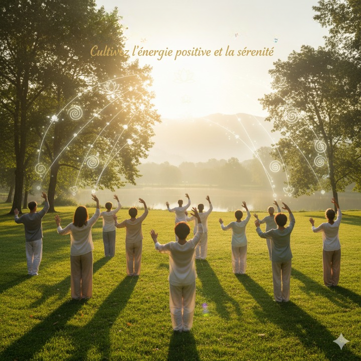 Le Qi Gong que j’ai conçu ici en « 3 en 1 » (pratique de base, déclarations de vie, étirements et l’envoi du bol de joie à la fin), favorise l’ouverture à soi, à la pleine conscience et l’équilibrage de l’énergie vitale.